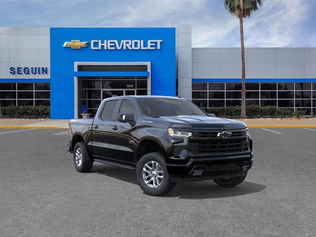 Black 2025 Chevrolet Silverado 1500 RST 4WD 10-Speed Automatic EcoTec3 5.3L V8 10-Speed Automatic, 4WD, Jet Black Leather.Thank you for considering Seguin Chevrolet for your automotive needs. We strive to exceed our customers expectation with a genuine approach to customer service. Our experienced sales staff can help you find the perfect vehicle to fit your needs and provide competitive financing.If money is a main consideration for your next car, you may want to check out our inventory of used vehicles. While we naturally carry used Chevy vehicles, we may also have cars in stock for sale used by other automakers. Therefore, no matter what kind of car you're looking for, check our website first or call to see what's in stock. We might have the car you want at the price you want, but it's best to act soon to ensure the car you hope to buy isn't sold before you buy it. Price excludes tax, title, license, doc fee and dealer added accessories. Price includes: $2250 - Chevrolet GM Financial APR & NCC Consumer Cash Program: $2250 discount and 6.39% APR for 36 months. $30.60 per $1000 financed. Available to well qualified buyers who finance through GM Financial. XGQ, NCC. Exp. 09/30/2025