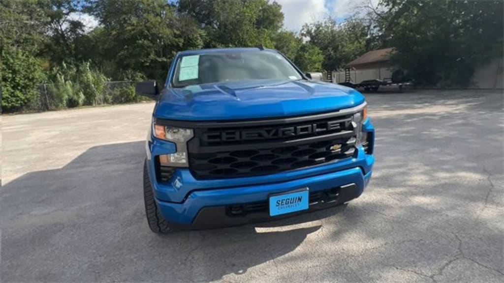 Thank you for considering Seguin Chevrolet for your automotive needs. We strive to exceed our customers expectation with a genuine approach to customer service. Our experienced sales staff can help you find the perfect vehicle to fit your needs and provide competitive financing.If money is a main consideration for your next car, you may want to check out our inventory of used vehicles. While we naturally carry used Chevy vehicles, we may also have cars in stock for sale used by other automakers. Therefore, no matter what kind of car you're looking for, check our website first or call to see what's in stock. We might have the car you want at the price you want, but it's best to act soon to ensure the car you hope to buy isn't sold before you buy it.CARFAX One-Owner. Clean CARFAX. Glacier Blue Metallic 2022 Chevrolet Silverado 1500 Custom RWD 8-Speed Automatic 2.7L Turbo 8-Speed Automatic, Black Cloth.Odometer is 7968 miles below market average!