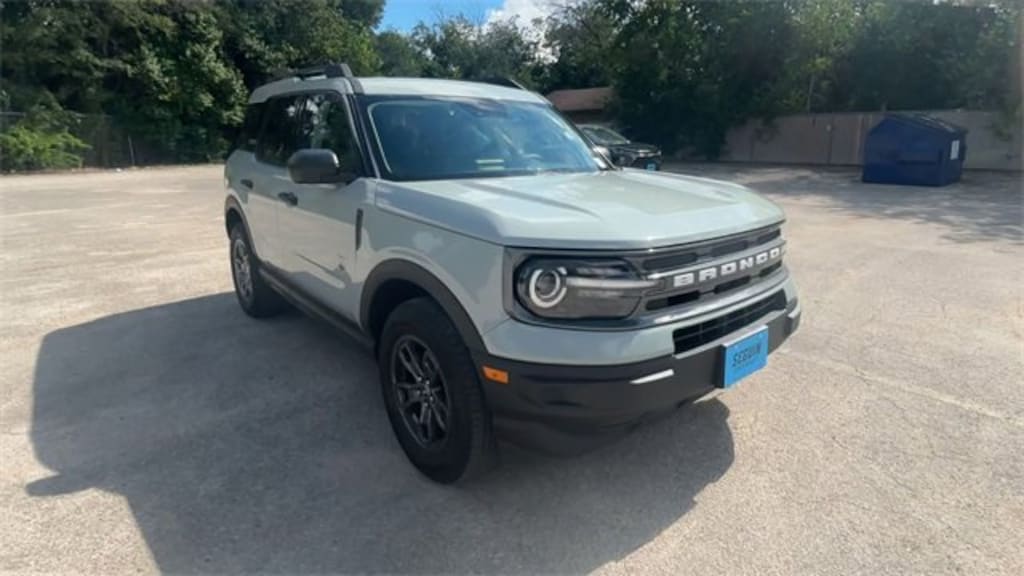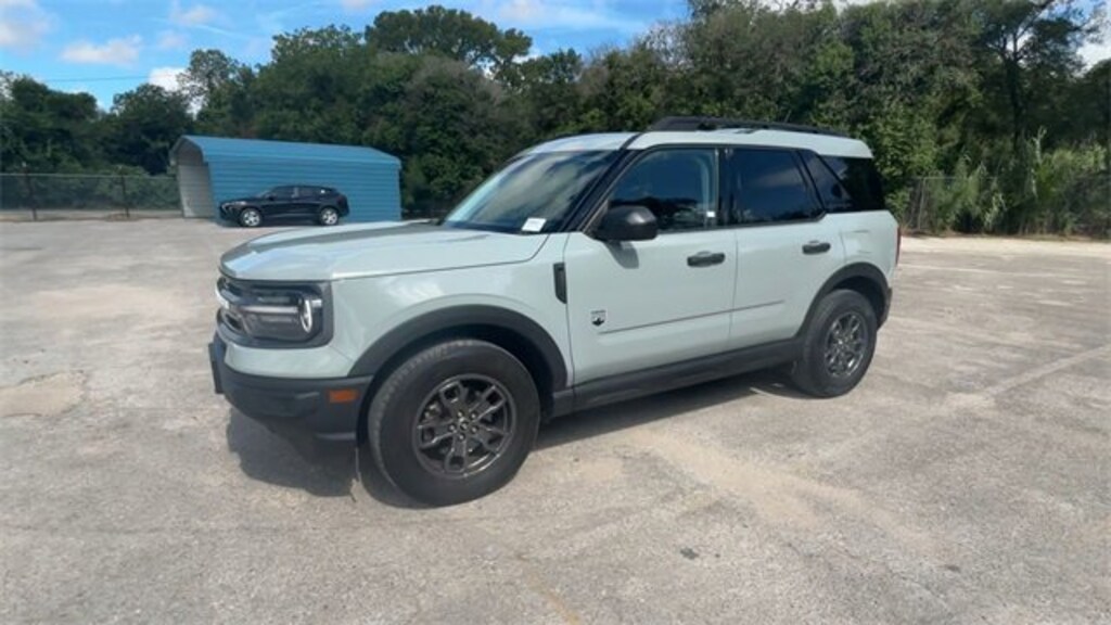 CARFAX One-Owner. Cactus Gray 2022 Ford Bronco Sport Big Bend 4WD 8-Speed Automatic 1.5L EcoBoost Bronco Sport Big Bend, 4D Sport Utility, 1.5L EcoBoost, 8-Speed Automatic, 4WD, 4-Wheel Disc Brakes, 6 Speakers, ABS brakes, Air Conditioning, AM/FM radio: SiriusXM, AM/FM Stereo, Auto High-beam Headlights, Automatic temperature control, Brake assist, Compass, Delay-off headlights, Driver door bin, Driver vanity mirror, Dual front impact airbags, Dual front side impact airbags, Electronic Stability Control, Emergency communication system: SYNC 3 911 Assist, Four wheel independent suspension, Front anti-roll bar, Front Bucket Seats, Front Center Armrest, Front reading lights, Fully automatic headlights, Heated door mirrors, Illuminated entry, Knee airbag, Low tire pressure warning, Occupant sensing airbag, Outside temperature display, Overhead airbag, Overhead console, Passenger vanity mirror, Power door mirrors, Power steering, Power windows, Radio data system, Rear anti-roll bar, Rear reading lights, Rear seat center armrest, Rear window defroster, Remote keyless entry, Roof rack: rails only, Security system, SiriusXM Radio, Speed control, Speed-sensing steering, Split folding rear seat, Steering wheel mounted audio controls, SYNC 3 Communications & Entertainment System, SYNC 3/Apple CarPlay/Android Auto, Tachometer, Telescoping steering wheel, Tilt steering wheel, Traction control, Trip computer, Unique Cloth Front Bucket Seats.